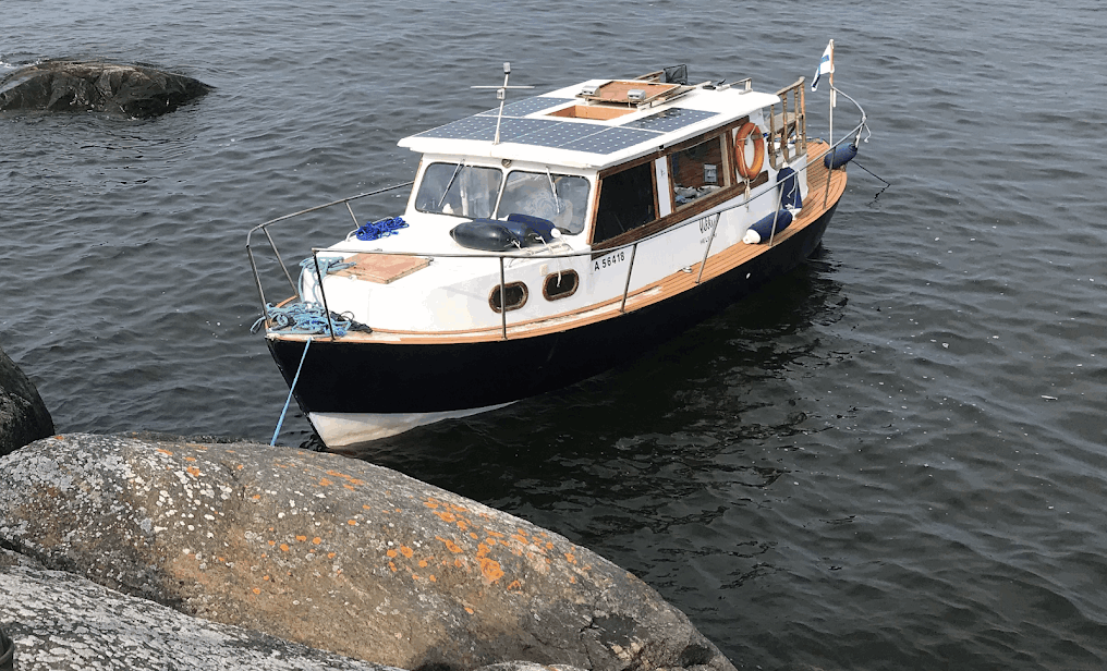 Kiinnitettynä, aurinkosähköä lataamassa